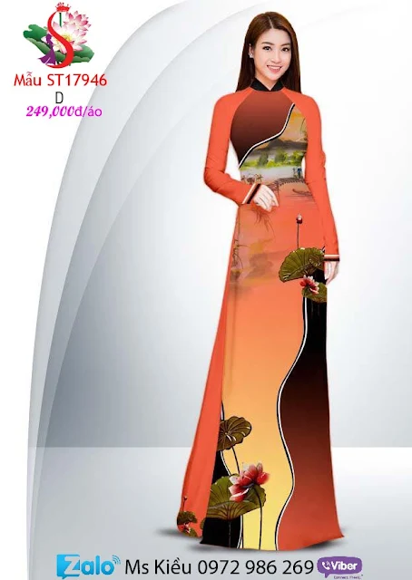 TƯ VẤN SẢN PHẨM KIỂU ÁO DÀI ĐẸP VỚI HOA SEN THỜI TRANG MẪU T17946: