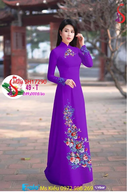 TƯ VẤN SẢN PHẨM KIỂU ÁO DÀI HOA CÚC ĐẸP, THANH LỊCH MẪU H17290: