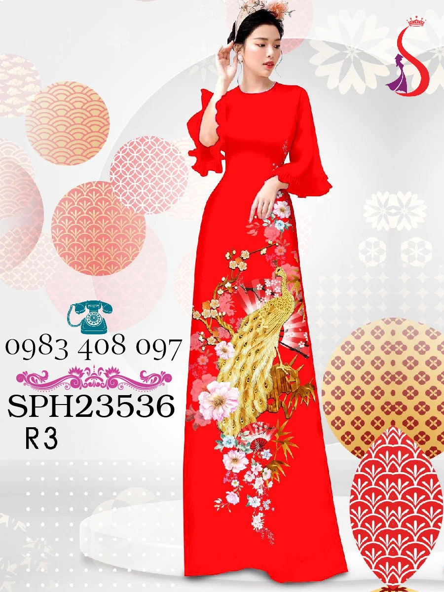 ✔️ Tôn dáng chuẩn S-line với cách bố trí chim công dọc thân áo.